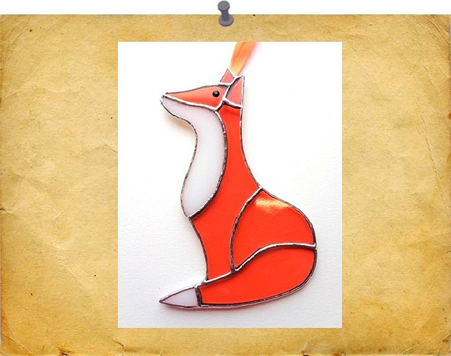 A stylish fox in a vibrant orange glass, finished in a silvery solder for a shiny effect.