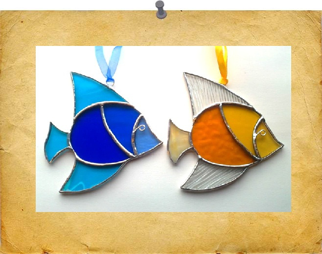 A colourful range of angel fish that will brighten up any window ! Finished in a silvery solder for a shiny effect.