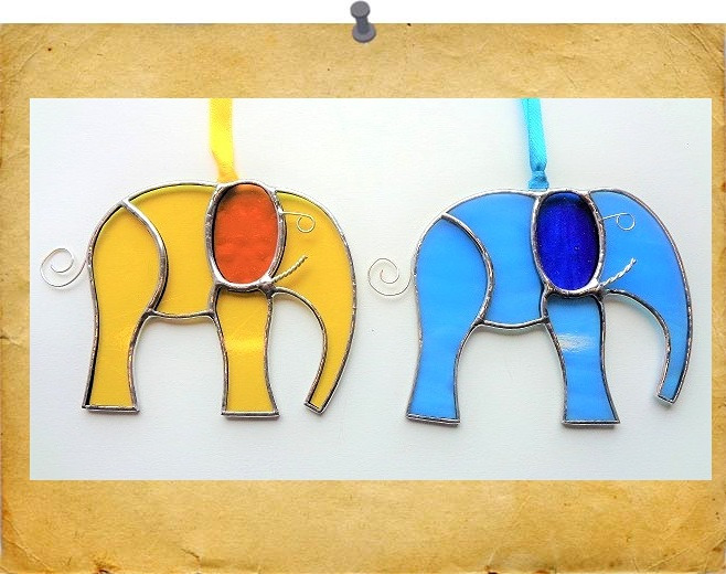 A range of elephants, each complete with tusk and tail. Finished with a silvery solder for a shiny effect. Colours will vary.